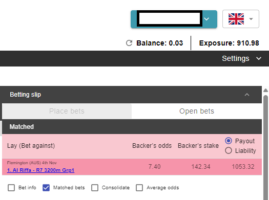 We’ve placed the 2 bets ourselves, so this is our BookieCity’s bet today from around 6am CST: